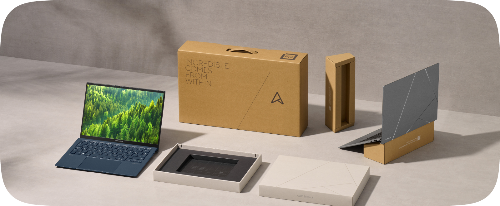 ASUS ўз маҳсулотларида қайта ишланган материаллардан фойдаланиш орқали углерод изини камайтиришга интилади.